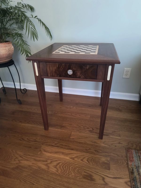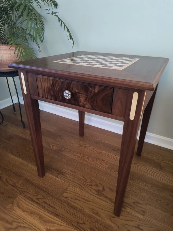 It was a real challenge to make this table from the wood supplied, having a substantial twist and unusable areas in the wood. I managed to steam-bend straighten enough to complete the project.